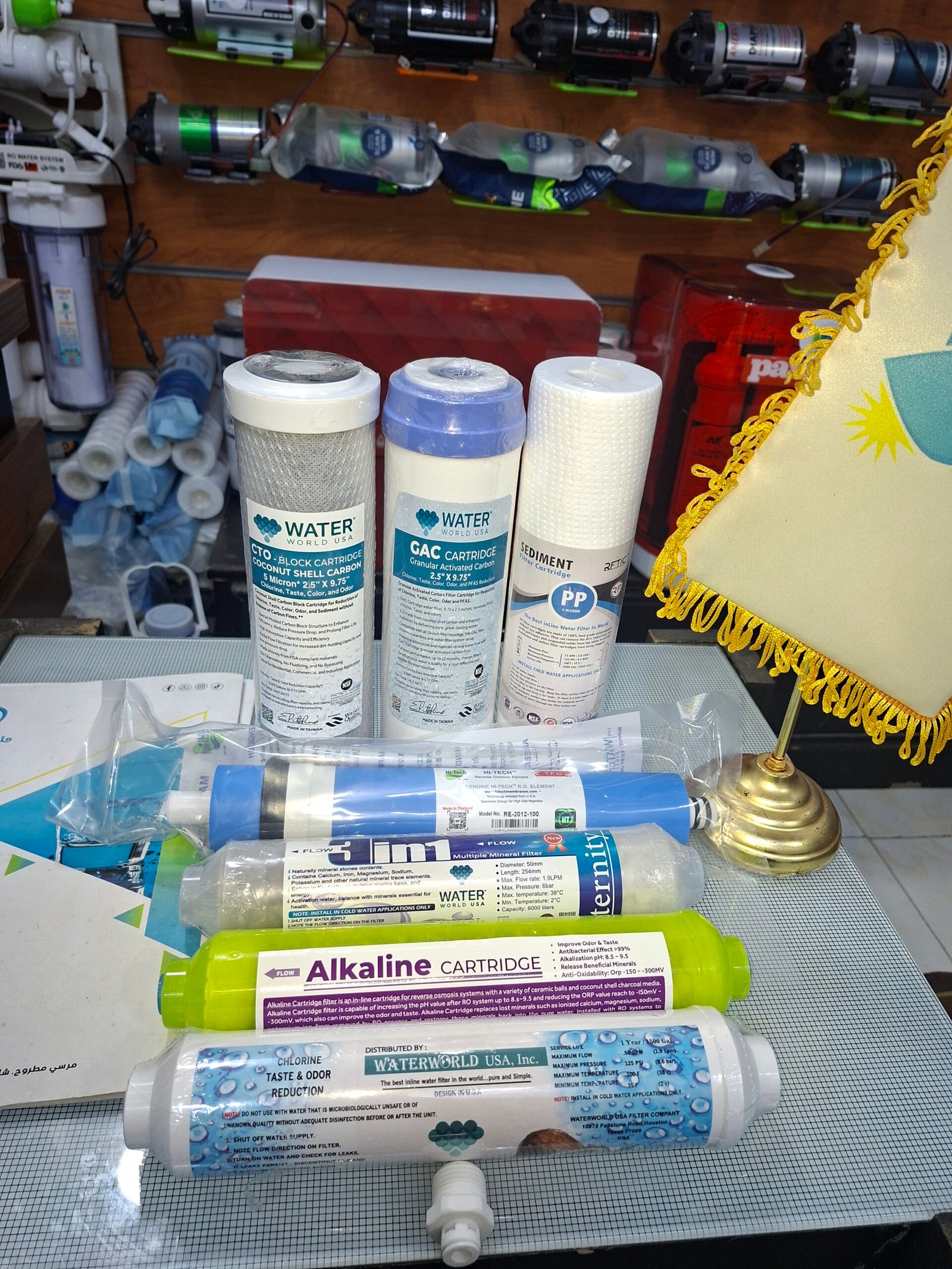 * المرحلة الرابعة (Membrane): وهي قلب الفلتر، تعمل على إزالة الأملاح الزائدة، الفيروسات، البكتيريا، والمعادن الثقيلة (غالباً ما تُباع منفصلة أو تأتي مع الأطقم الكاملة).