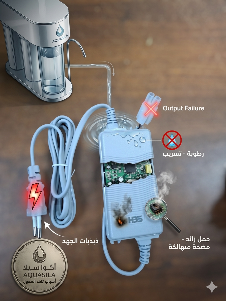 وداعاً لأعطال الكهرباء المتكررة! نقدم لك محول الجهد (الأدابتور) المطور من أكوا سيلا، المصمم خصيصاً للعمل في أصعب الظروف المنزلية. هذا ليس مجرد محول تقليدي، بل هو خط الدفاع الأول عن مضخة فلترك.