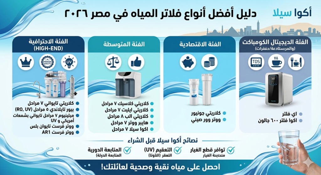 دليل أفضل أنواع فلاتر المياه في مصر 2026: المواصفات والأسعار المحدثة